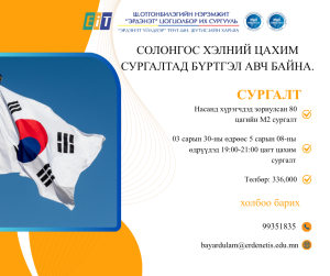 - Онц, сайн дүнтэй суралцагч сургалтын төлбөрийн хөнгөлөлт эдэлнэ.