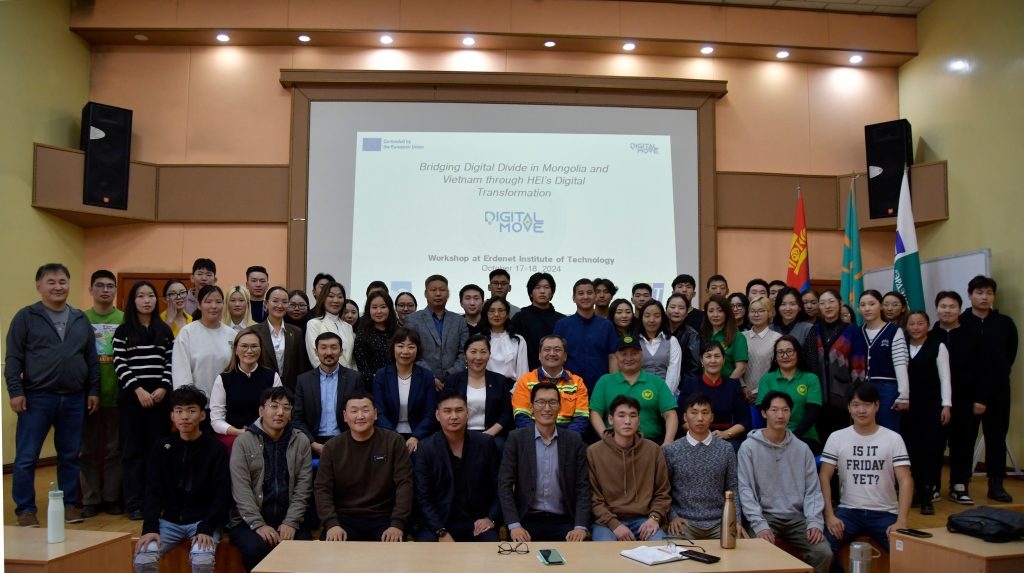 Уг төслийн хүрээнд “Эрдэнэт цогцолбор” дээд сургуулийн цахим сургалтын тэргүүн туршлагыг хуваалцах сургалт өчигдөр зохион байгуулагдлаа. Тус сургалтад DIGITAL MOVE төслийг хамтран хэрэгжүүлэгч Монголын дөрвөн их сургууль болох “Эрдэнэт цогцолбор” дээд сургууль, Сити их сургууль, Хөдөө аж ахуйн их сургуулийн Дархан-Уул аймаг дахь салбар сургуулийн багш, оюутнууд оролцсон байна.